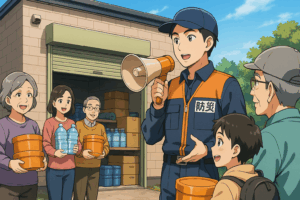 防災訓練や水・非常食品・防災機材用品などを保管する備蓄倉庫の整備を推進します。