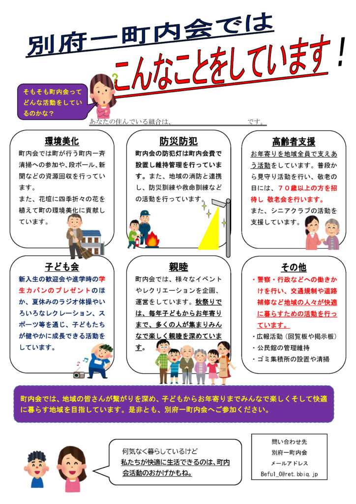 別府ー町内会は、住民の繋がりを大切に、共に助け合い住み良い、安全・安心な明る